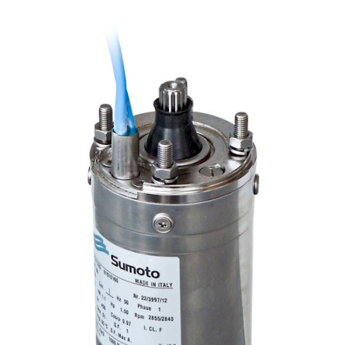 6" капсуловани двигатели за сондажни помпи. Осигуряват дълга и надеждна работа при температура на водата до 90°C. Предлагат се с мощност от 3,7 до 30 kW.