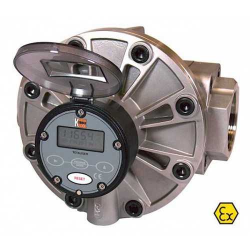 Турбинен разходомер с електронен дисплей. Разходомера е предназначен за работа с взривоопасни продукти (бензин, керосин, дизелово гориво) или във взривоопасна среда. Работен диапазон 7-120 л/мин. Точност +/- 1%.