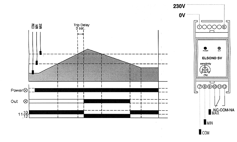 Релето служи за регулиране и контрол на нивата на електропроводими течности. Може да се използва за защита от преливане, защита от работа на сухо, за пълнене или източване, както и за индикиране на максимално и минимално ниво. Релето работи с 3 датчика.