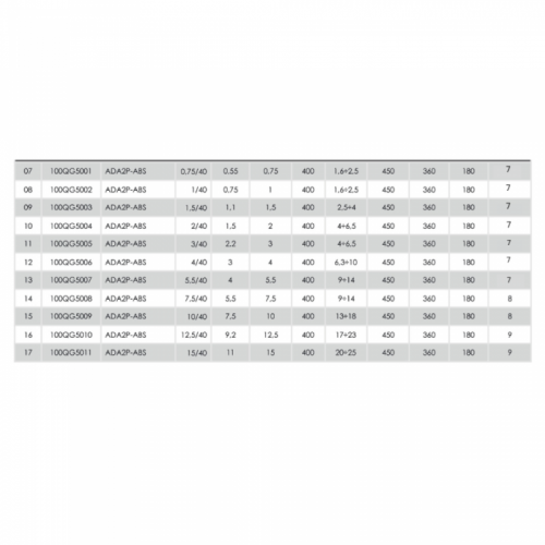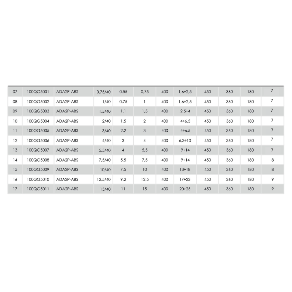 - Мощности (НР): 0,75 / 1 / 1,5 / 2 / 3 / 4 / 5,5 / 7,5 / 10 / 12,5 / 15