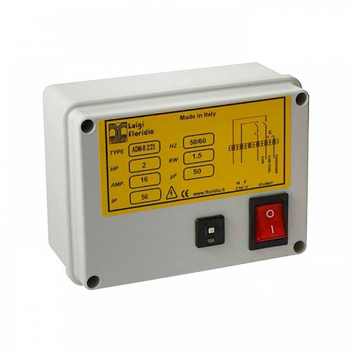 Таблото ADM-B решава проблема с монофазните потопяеми електрически помпи, които изискват, в допълнение към термичната защита, специфичен пусков кондензатор и ключ за включване и изключване.