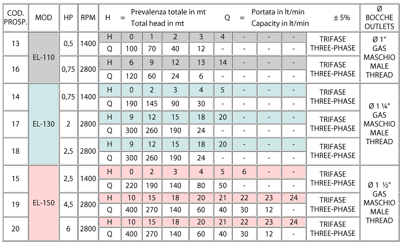 Серия EL са центробежни помпи, които предлагат висока издръжливост дори и при екстремни работни условия. Те са идеалното решение за изпомпване на замърсена вода, съдържаща химикали и агресивни частици. Намират приложение в текстилната, хранителната, фармацевтичната промишлености.