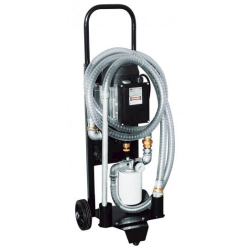 Система за пречистване на масла от нежелани частици. Оборудван е с прозрачни смукателни и нагнетателни маркучи за по-лесна експлоатация. Монтираният манометър показва кога филтъра се е задръстил.