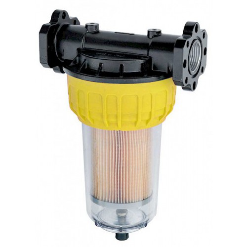 Прозрачен филтър, който отделя водата от нафтата. Има дренажен отвор за източване на водата. Филтрира горивото на 35 микрона. Пропускливост 70 l/min. Присъединителен размер 1".