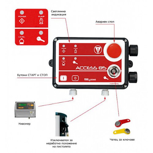 Електронен модул за контрол на система за зареждане на гориво. Модула управлява: работата на помпата (пускане и спиране), достъпа на потребителите, положението на пистолета за зареждане. С ACCESS 85 могат да зареждат…