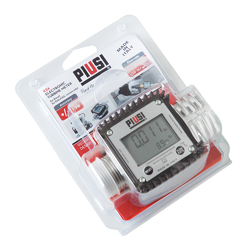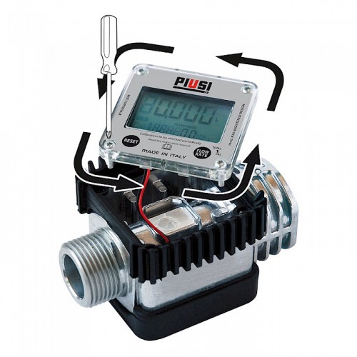 Турбинен дигитален разходомер за отчитане на ниско вискозитетни флуиди с турбинна мерителна система. Лесен за монтиране in line или в края на нагнетателната тръба, снабден с лесен за четене компактен дисплей.