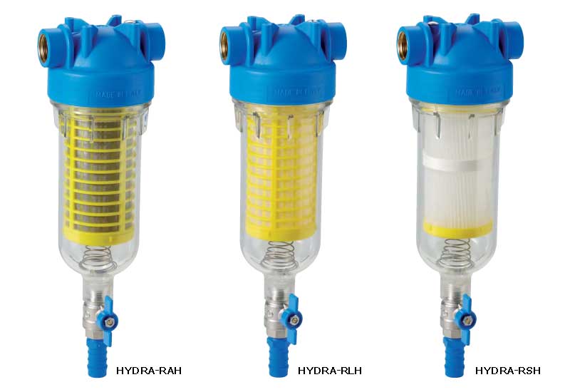 Филтрите за вода HYDRA са самопочистващи. Когато е необходимо почистване на филтъра, почистващият процес с обратно завихряне се задейства просто с отваряне на дренажния сферичен кран. Тази манипулация води до спадане на налягането, което изтласква патрона надолу към дъното на корпуса и преобръща дебита от вътрешната към външната му страна. Именно този насрещен противопоток почиства замърсяванията, които покриват външната част на патрона.