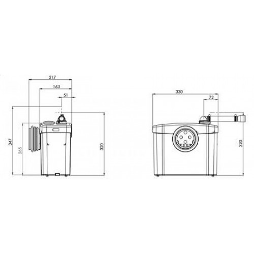Saniflo сега е с рекоструиран корпус, малко по-голям отколкото предшестващия модел, с цел намаляване на шума.