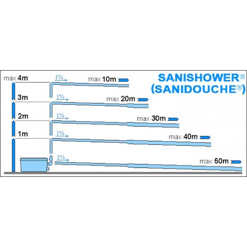 Sanishower е компактна система за изпомпване на отпадни води от душ, мивка или биде. Малките размери и ниското ниво на стартиране, позволяват Sanishower да бъде монтирана под душкабината или шкафа на вашата баня. Sanishower има и редица други приложения, като например опцията за ползването ú като помпа за кондензат. Максималната височина на изпомпване е 4 метра.